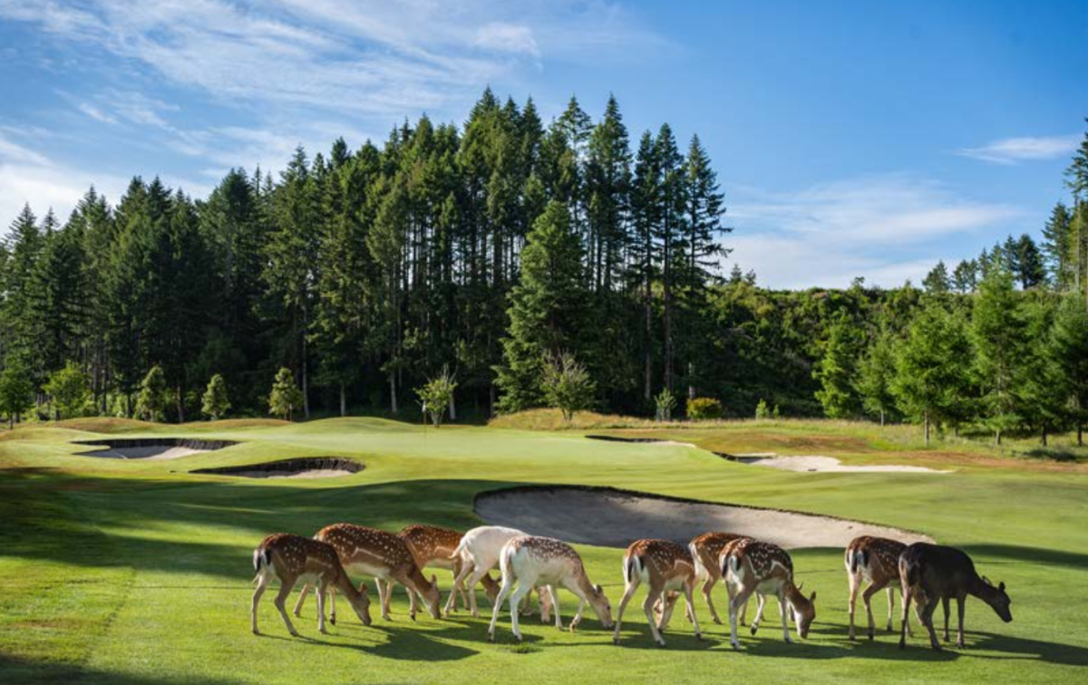 Oggi Wairakei è molto più di un campo da golf: è un vero santuario naturalistico. Una recinzione anti-predatori circonda l’intera proprietà e consente a daini, pavoni, fagiani, anatre e numerose specie autoctone di muoversi liberi tra fairway e foreste. Il percorso è un parkland elegante, armonioso, modellato tra boschi di conifere, colline e laghetti; ogni buca sembra appartenere da sempre al paesaggio. Tra le buche più celebri, la 14, The Rogue, è considerata uno dei par 5 più difficili della Nuova Zelanda: 548 metri, drive che deve superare una serie di bunker chirurgici, secondo colpo da posizionare con cura e un green alto e scosceso che non perdona.