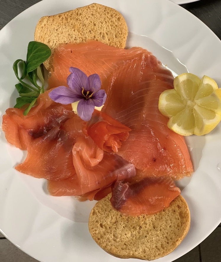 Salmone selvaggio del Canada con crostini dorati