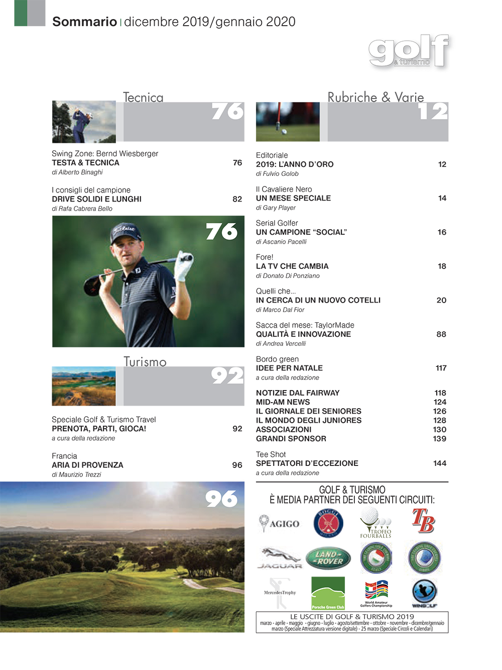 Due gli argomenti principali del numero di Golf & Turismo che chiude il 2019.